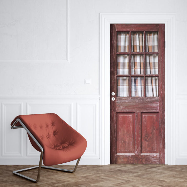 Le vinilo para puertas Puerta acristalada de madera vintage roja